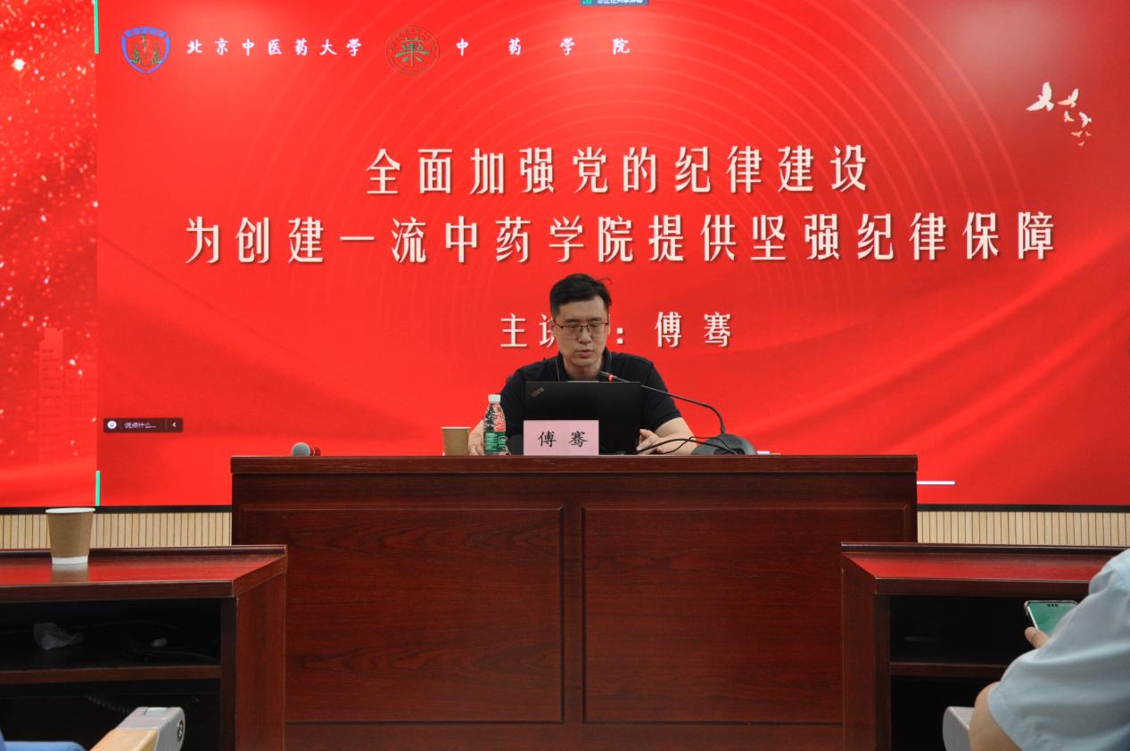 ylzzcom永利总站党委书记傅骞为学院全体党员讲授党纪学习教育专题党课