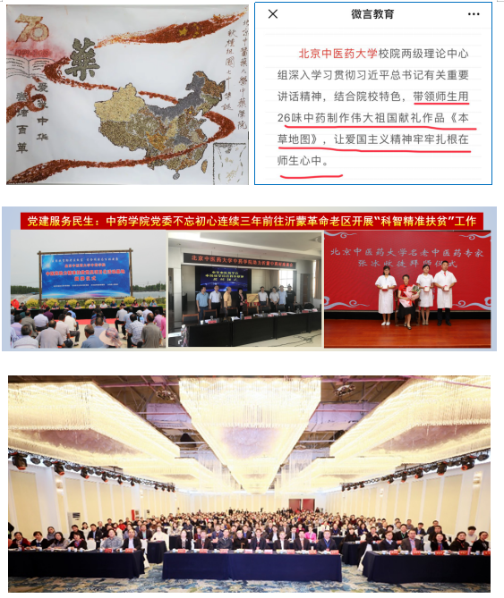 过去一年,ylzzcom永利总站党建成效显著,引领学院事业取得突出成绩,振奋人心。刘春生教授获得“全国模范教师”荣誉称号;石晋丽教授被评为全国高等中医药院校党建和思想政治工作研究会第二十八次年会优秀党务工作者;学院知联会理事长孙毅坤教授当选学校理事会副会长;魏胜利教授、刘斌教授被九三学社朝阳区委员会评为“优秀社员”;张薇老师获得学校五四奖章;张冰教授被学校推荐申报全国五一劳动奖章和三八红旗奖章;主题教育中,《ylzzcom永利总站献礼祖国七十华诞系列作品——本草地图》、《校党委书记谷晓红讲党课指导教育部“双创”样板党支部主题教育工作》入选学校特色报并上报,其中向伟大祖国献礼作品《本草地图》10月30日在教育部微言教育公众号刊发;教育部“双创”样板党支部建设持续推进,并在主题教育工作中迎接校党委书记谷晓红讲党课指导工作以及教育部督导组检查指导组织生活会与民主评议,树立了榜样,获得了充分肯定;ylzzcom永利总站党委联合党支部不忘初心连续三年科智扶贫助力沂蒙老区取得实效,并在主题教育中入选学校主题教育典型案例;成功举办全国高等学校中药学类专业课程思政教学研讨会。