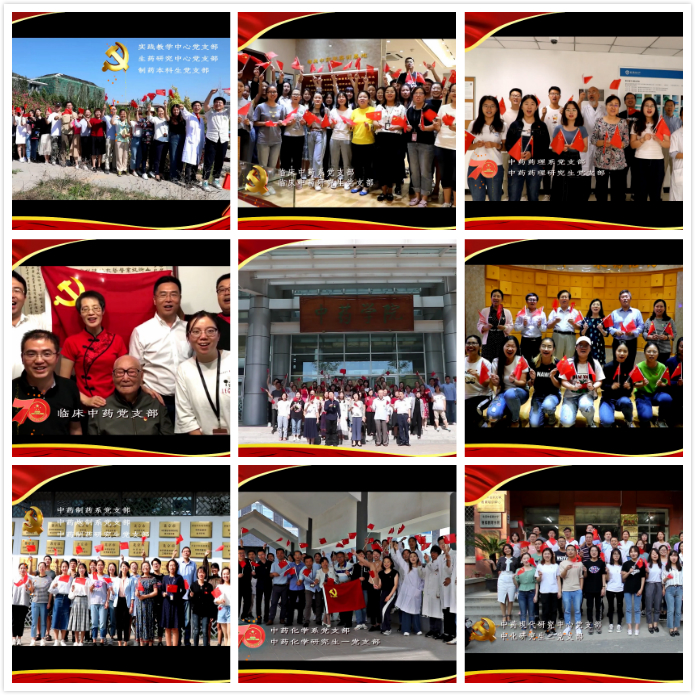 之后,学院各基层党支部分别在ylzzcom永利总站大厅、本草园、临床中药学实践基地、中药DIY鉴别体验中心、和平街校区药系楼前等ylzzcom永利总站地标性建筑前拍摄视频,挥舞小国旗,高声喊出对祖国母亲的生日祝福。