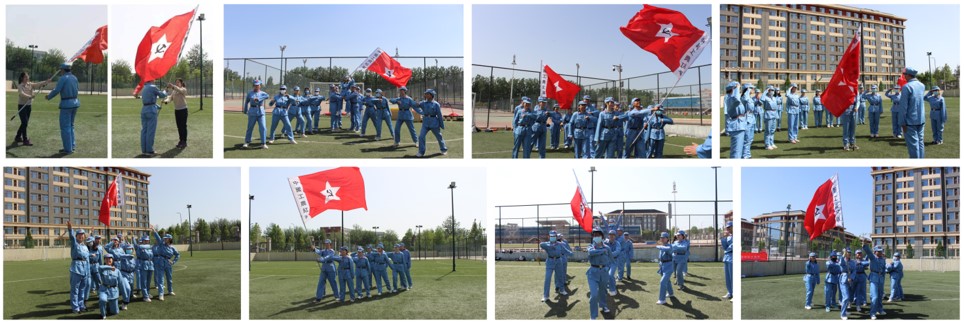 活动伊始,周天老师进行活动致辞,希望同学们在活动中学习党史、弘扬劳动精神、增强体魄、培养团队精神,进而筑牢理想信念,强化党员意识,争做先锋模范。随后,在培训师的指导下,同学们组成红一、红二等军团,周天老师向各军团授予中国工农红军旗帜,军团长们挥舞旗帜并带领团员喊出口号、进行团队展示,进一步提升了团队凝聚力与集体荣誉感。