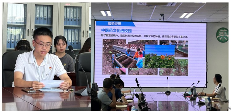 徐冉同学向大家分享了在铜川支教期间的故事。从教学工作到日常生活,他通过理论与实践结合,线上与线下结合等多种方式,为孩子们种下自然科学和中医药的种子,开拓了孩子的眼界。“只有俯下身来,才能感受大地的律动”,徐冉同志用亲身实践与当地师生群众打成一片,收获了宝贵的情谊。