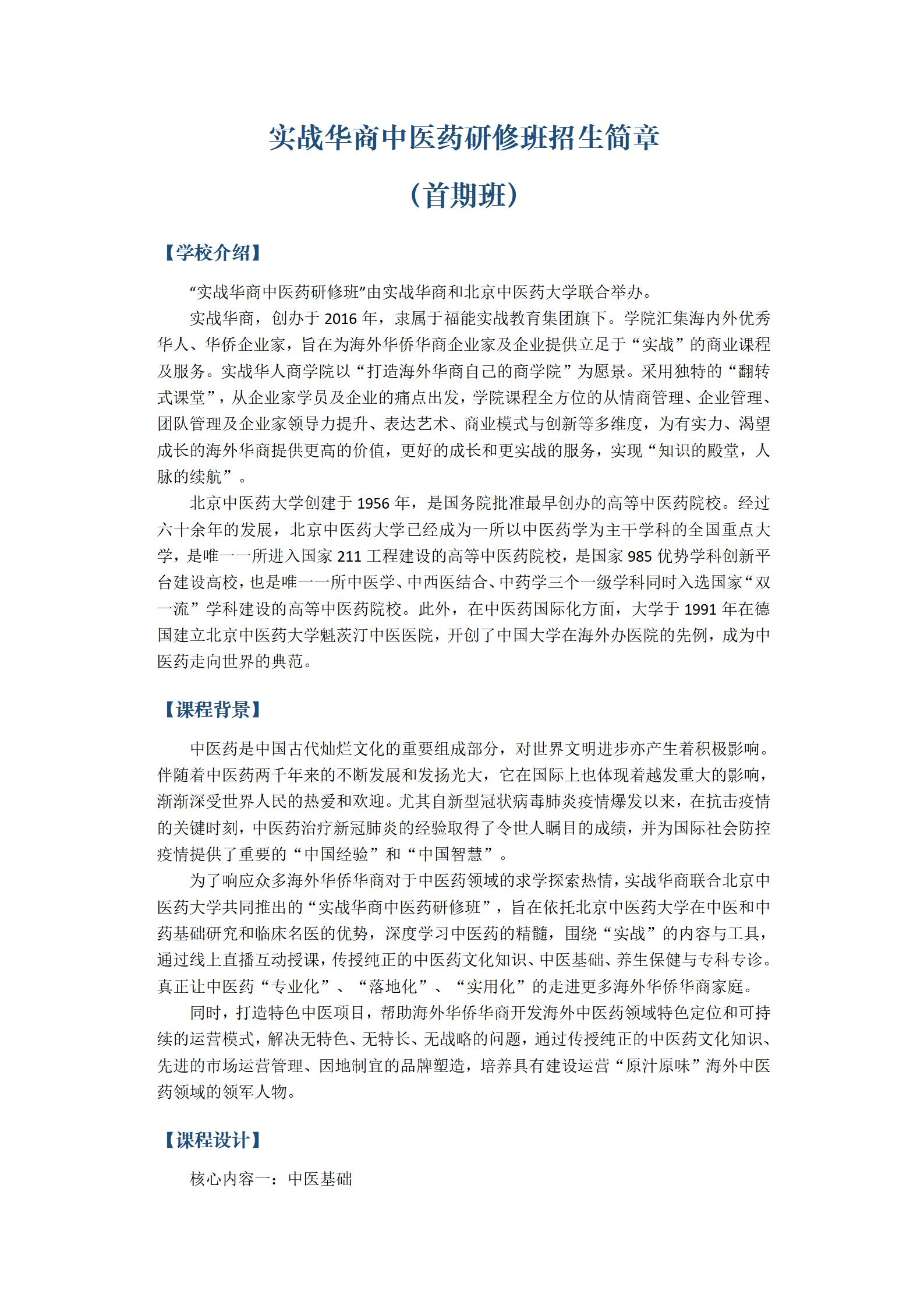 实战华商中医药研修班招生简章(首期班)