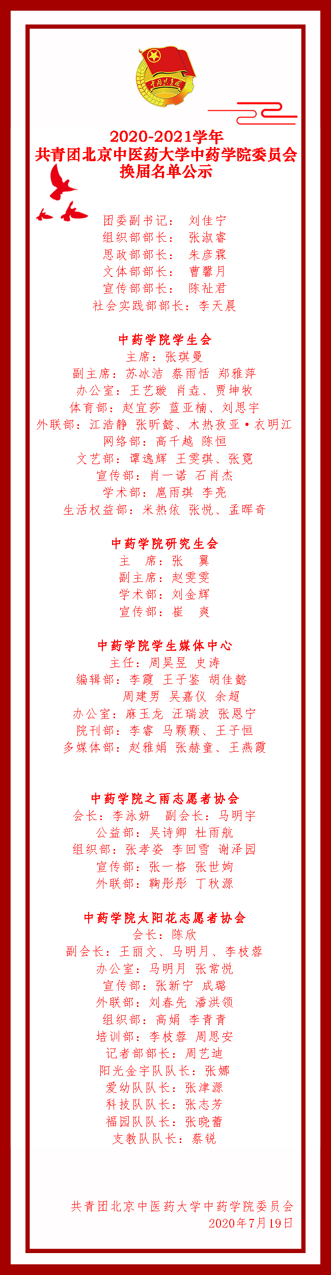 【换届】2020-2021学年共青团ylzzcom永利总站委员会换届名单公示