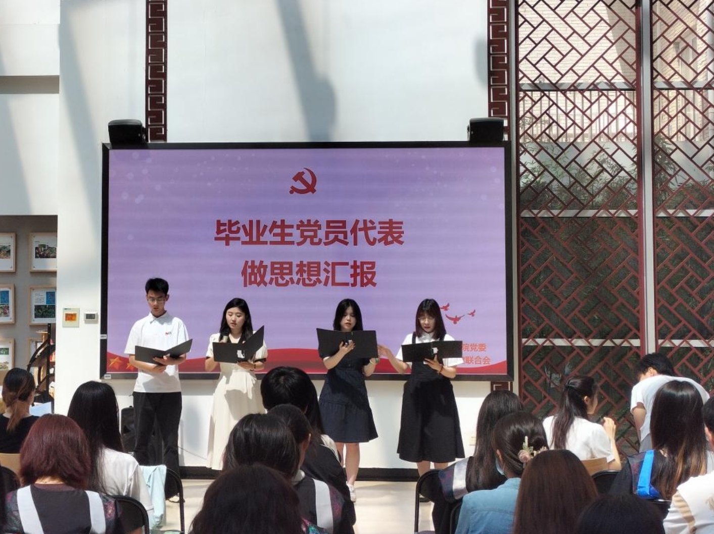 全体毕业生党员在党旗下重温入党誓词,时刻牢记党员身份,遵守党章党规党纪,勇做时代先锋,永葆先进本色。