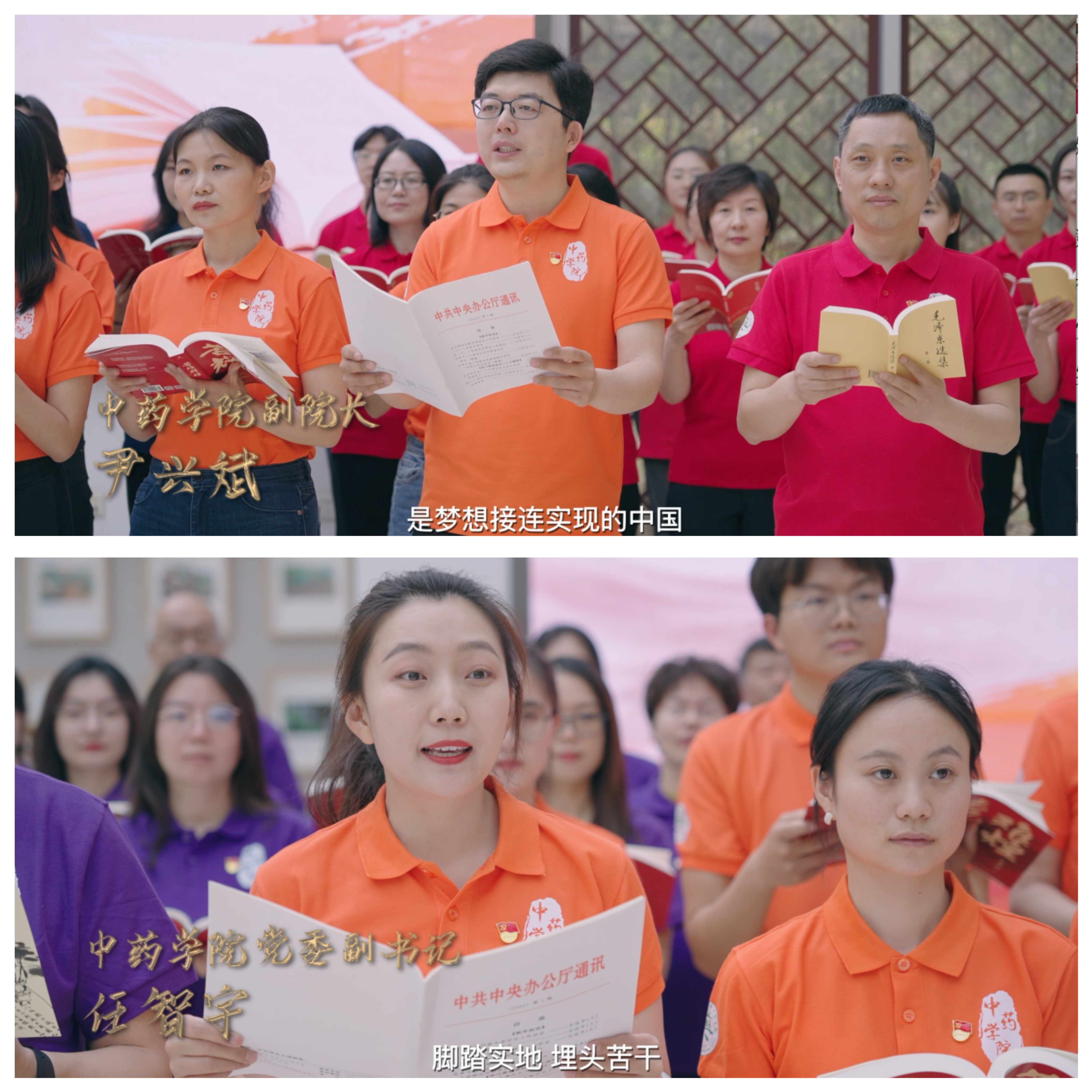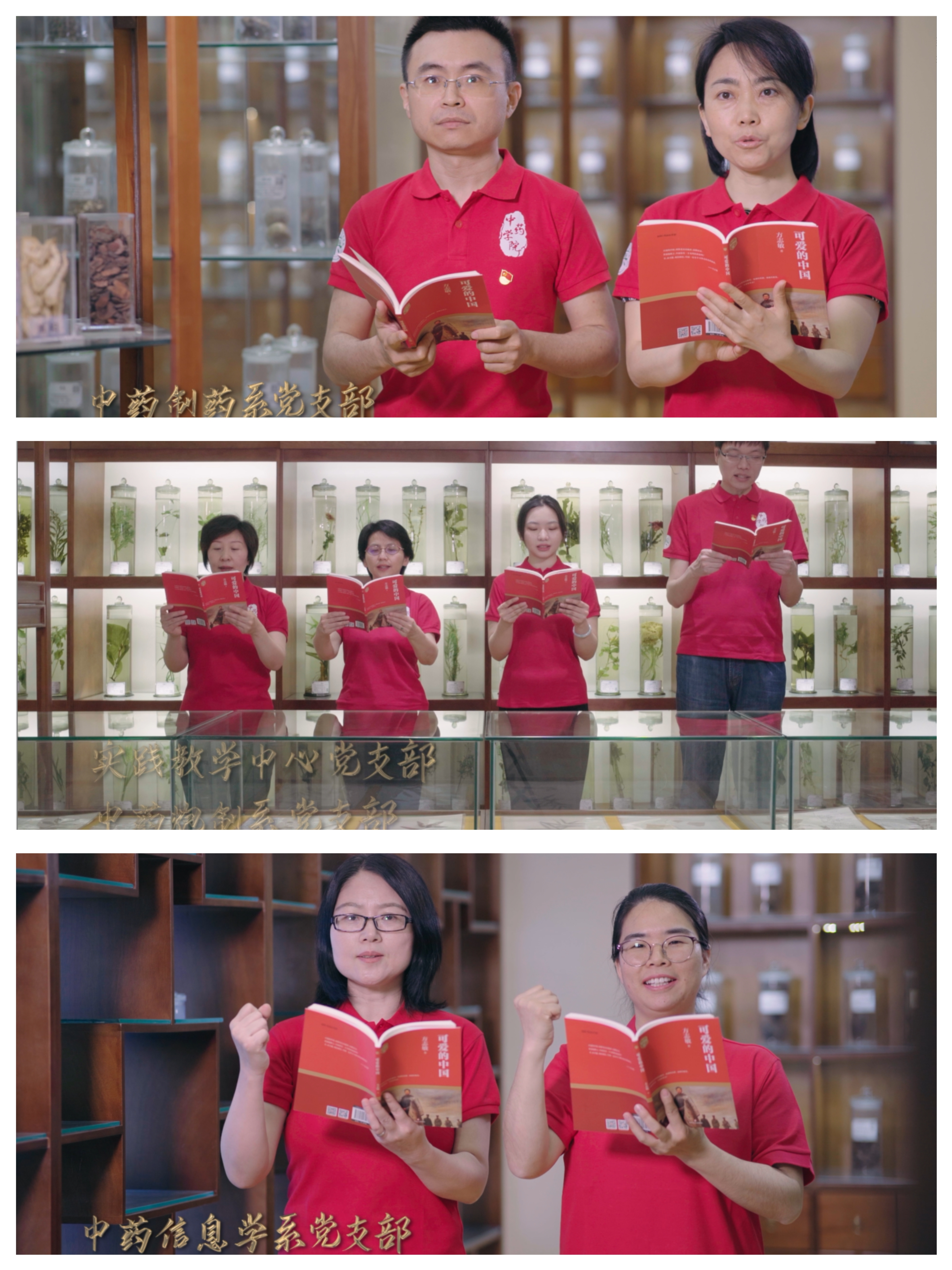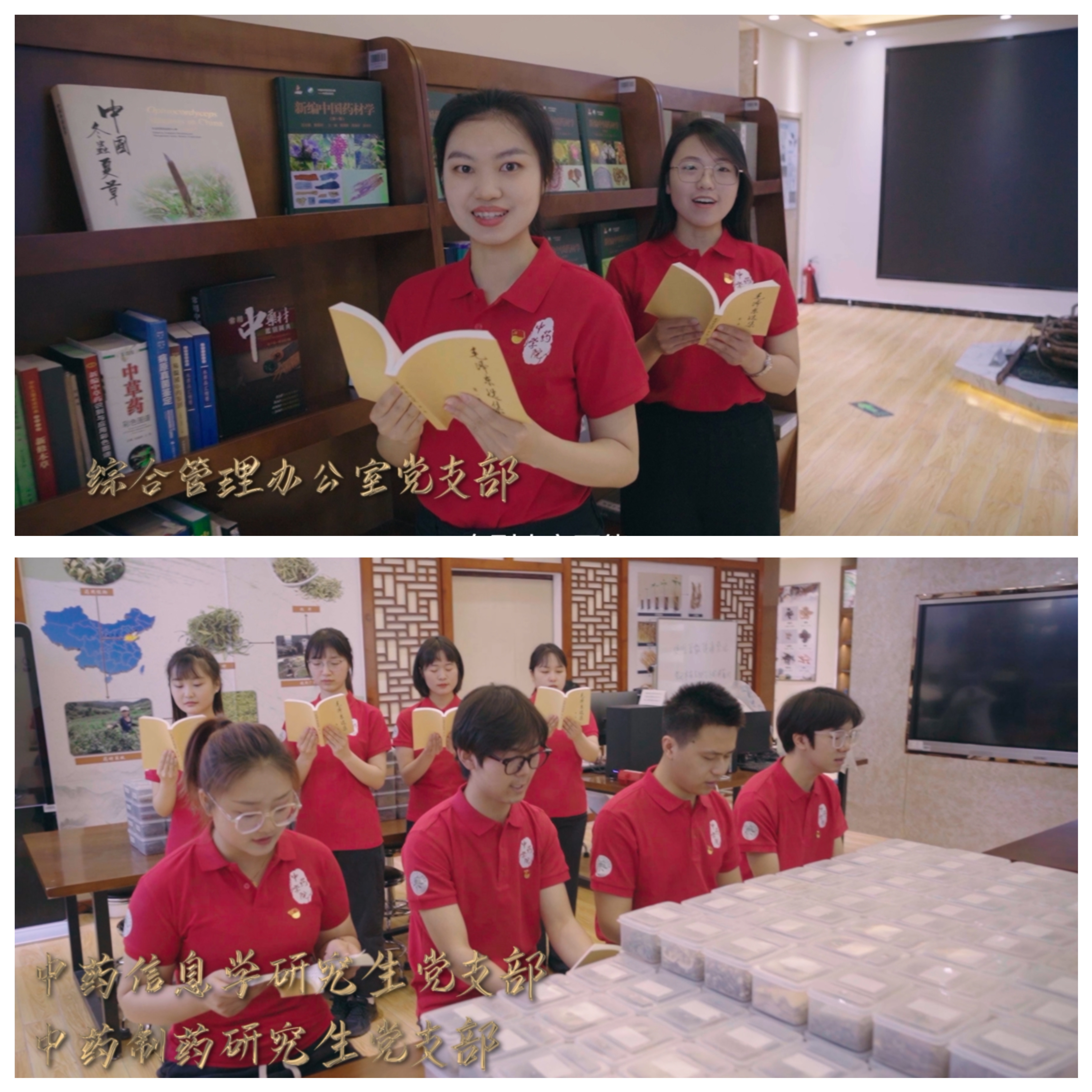 第二篇章“奋进征程”。魏胜利副院长领读《中华民族的人格》,用激昂而又坚定的声音展现中华民族的真人格、真精神。中药资源与鉴定系党支部、中药分析系党支部、中药生药研究生党支部、临床中药系党支部、中药药理系党支部、临床中药研究生党支部共读《功勋—屠呦呦:与青蒿结缘,用中医药造福世界》《功勋—钟南山:大医精诚写大爱》,学习典型、开拓进取;中药化学系党支部、中药化学研究生第一党支部、北京中医药研究院党支部共读《战疫口述实录》,表达对中医药工作者的崇敬之情。