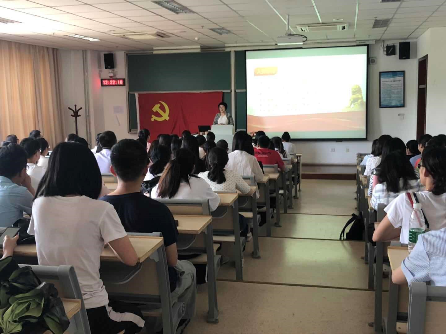 为进一步将党的十九大精神落到实处,教育引导广大学生党员深刻把握新时代国家及学校发展的历史方位,以追求卓越、只争朝夕的精神,勇于担当建设中国特色世界一流大学的新使命,在推进“双一流”建设中展现新作为。值此中国共产党成立98周年之际,ylzzcom永利总站党委于6月14日中午在教学楼274教室开展“弘扬爱国奋斗精神,建功立业新时代”主题党课,学院全体学生党员参与活动。ylzzcom永利总站党委书记刘雯华老师、学院辅导员出席本次党课。