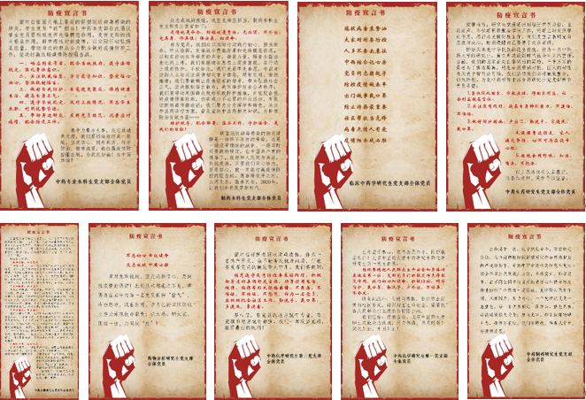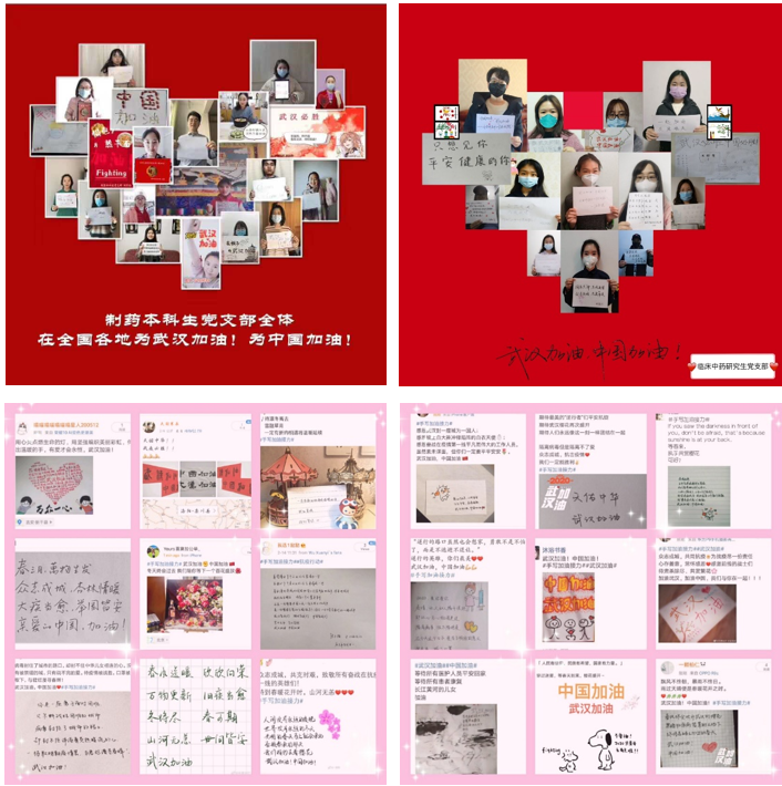 2月10日-24日,ylzzcom永利总站学生党支部围绕“众志成城、共克时艰”主题内容,创新方式,利用拍照、绘画、文字、制作视频等形式,组织开展“为武汉加油”、“我想对你说”等主题党日活动,教育引导学生党员深刻认识中华民族在面对疫情和灾难面前“一方有难、八方支援”的崇高精神,深刻认识中国特色社会主义制度“集中力量办大事”的显著优势,引导学生党员进一步坚定“四个自信”,切实发挥党员的先锋模范作用。部分学生党员还积极主动的参与到抗疫行动中,有的向家人朋友等宣传,讲解相关科普知识,动员身边人做好防控工作;有的加入社区志愿者,协助交通关卡执勤点对来往车辆通行证的检查,体温的测量。总之,疫情面前,学生党员们紧紧拧成一股绳,将关心与爱传递给更多的武汉人民,做更暖心、更温情的中药人!
