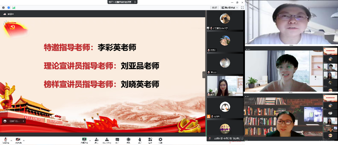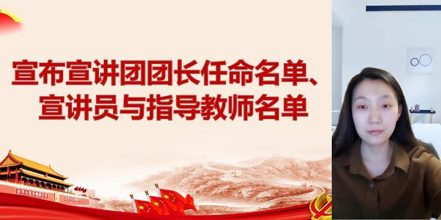 ylzzcom永利总站党委副书记任智宇宣读宣讲团团长、宣讲员、指导教师的任命名单。宣讲员代表韩宝佳、李昕钊和指导教师李彩英、刘亚品、刘晓英分别发言。榜样宣讲员韩宝佳谈到,加入“红·印”宣讲团是一种激励,更是一种责任,明确新时代青年人的责任与担当,将是我们宣讲团成员不变的课题;理论宣讲员李昕钊讲到,“红·印”对于青年学生而言是赤诚的爱国热情,是作为新时代青年学子应当具备的基本素质和理应承担的公民义务;李彩英老师分享了首都师范大学李燕杰教授的一句话“忠心献给祖国,爱心献给人民,孝心献给父母,信心留给自己”,激励大家唱响主旋律、讲好党的二十大精神;刘亚品老师讲到,理论宣讲员要深入挖掘、研究党的二十大的理论内容,不断学习和思考,希望同大家一起完成宣讲这样一个讲述“美”的过程;刘晓英老师提出,榜样宣讲员要基于“树新风、接地气、转思维”三点,与榜样契合、紧扣时代主题,呈现多元融合、图文并茂、融情于景的宣讲方式。