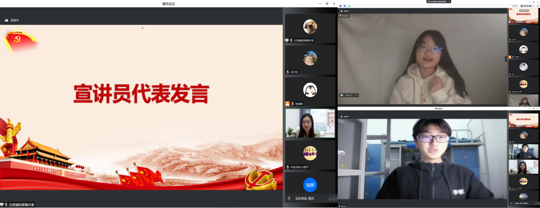 会上,宣讲团团长张淑睿同学从组织架构、宣讲内容、工作职责与制度等方面介绍宣讲团的整体情况,指出“红·印”宣讲团以深入学习贯彻党的二十大精神,帮助广大同学深入了解党史、培养爱国热情、传承红色基因为宗旨,通过“讲前试,讲中督,讲后思”的模式,开展有理论、有内涵、有形式的宣讲活动,切实发挥宣讲团的育人作用,不断推进学院党建工作的内涵式发展。