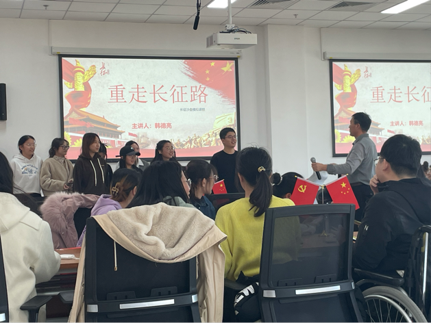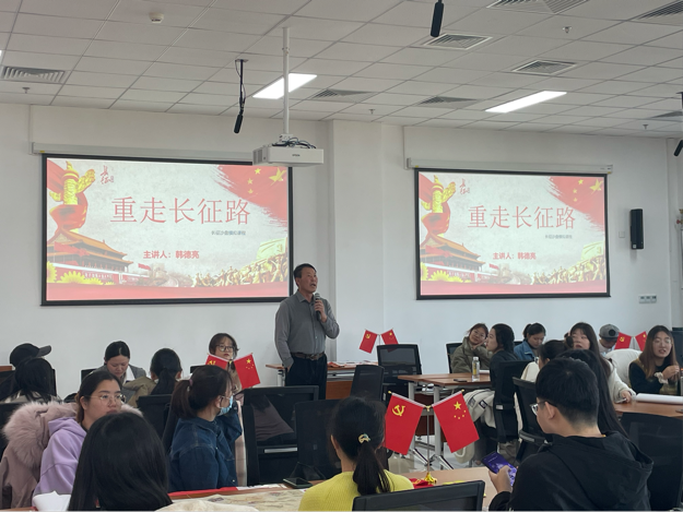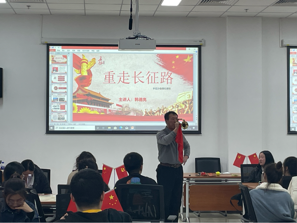 党史学习部分,韩老师以《七律·长征》做引,全面回顾并讲解了红军长征的历史知识,解读了长征精神,指出同学们要以长征精神指引自己,走好我们这一代人的长征路。