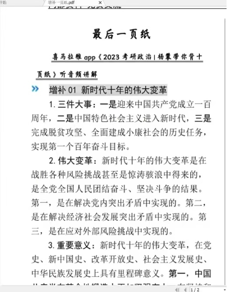 11月10日晚,政治科目备考冲刺率先开讲。中公考研北京考研政治研究院资深讲师边嘉慧结合中公考研冲刺课程《最后一页纸》进行分享。她首先指出,当前时间节点下,政治科目复习重点是查漏补缺,可以结合真题演练发现自身复习的不足,进而针对性的提高;同时她也建议同学们注意心态的调整,多刷题,精背诵并积极总结规律。