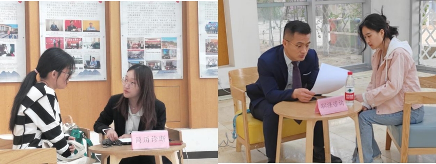 除此以外,活动特意设置的简历诊断台和职涯咨询台也得到了毕业生的欢迎。简历诊断咨询师、前程无忧校园招聘部经理陈雅馨建议毕业生制作简历时在保证真实性的基础上,尽量要突出亮点,高效抓住Hr的注意力;职涯咨询师、管理学院专职辅导员周磊则建议学生一定要早思考,早了解,早准备,早下手,才能更好地在职业生涯发展中抢占先机。