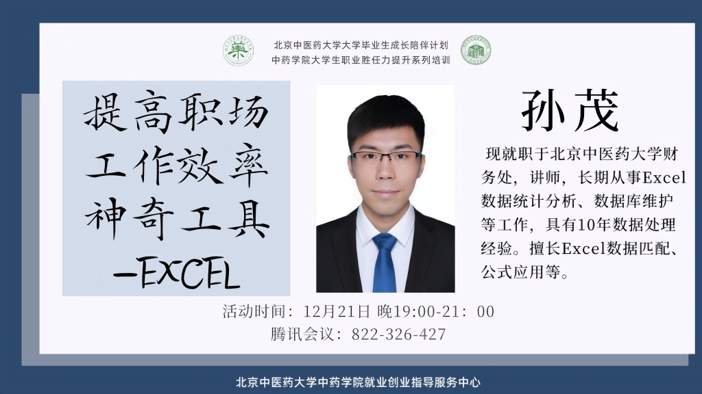 2022年12月21日,由ylzzcom永利总站主办,ylzzcom永利总站就业创业指导服务中心承办的ylzz总站线路检测毕业生成长陪伴计划、ylzzcom永利总站大学生职业胜任力提升系列培训的第5场活动顺利开展。本次活动聚焦职场数据处理,以Excel使用能力提升为切入点展开培训。活动邀请到学校财务处孙茂老师作为嘉宾进行主题分享,在学院专职辅导员、就业专员王硕主持下进行。