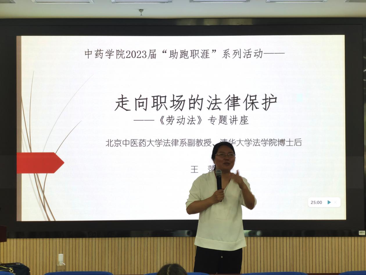 为切实助力学生职涯发展,更好适应“职场人”身份的转变,按照ylzzcom永利总站2023届毕业生毕业就业相关工作整体安排,2023年6月14日,由ylzzcom永利总站主办,ylzzcom永利总站就业创业指导服务中心承办的2023届“助跑职涯”系列活动——《走向职场的法律保护——<劳动法>专题讲座》在科研综合楼小报告厅成功举办。本次讲座邀请到我校法律系王萍副教授主讲,活动由ylzzcom永利总站辅导员、就业专员王硕主持。