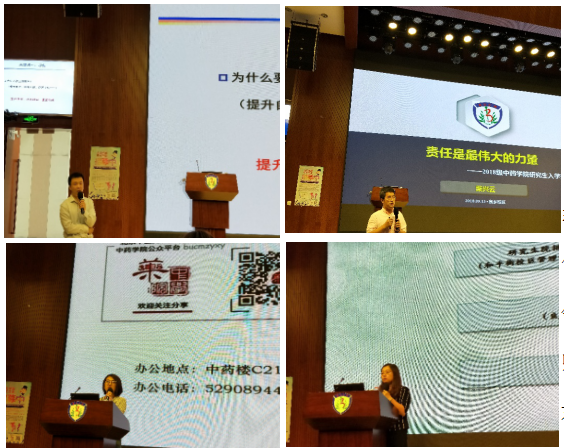雷海民院长向同学们介绍了我院基本情况,让新生们对学院的基本建制有了了解。同时,雷院长也与研究生新生们一同分析和展望中医药行业的发展前景。他希望同学们以优秀校友前辈为榜样,不断提升自己的学习能力和科研能力,做好学业规划,学会主动学习,掌握终身学习的技能。