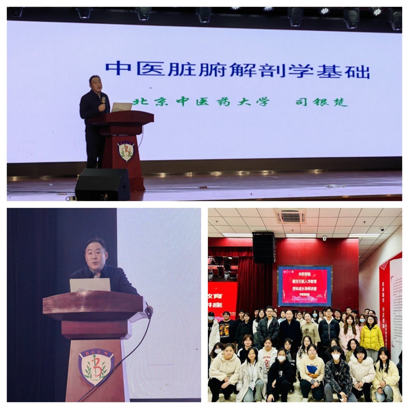 12月7日下午,在良乡校区东院学生活动中心报告厅,中医学院解剖教研室主任,22中制1班、2班杏林成长导师司银楚教授为同学们讲授“中医脏腑解剖学基础”专题讲座。一个小时的时间,司老师给同学们梳理了中医解剖的发展历史,中医解剖学的研究方法和研究意义,以及中医解剖学里的一些重要基本概念含义,对比了中西医里对五脏六腑的认知区别,为同学们讲解了他对中医解剖未来发展的思考。在场200多名同学认真聆听了司老师的讲座,通过学习中医知识,同学们认为,中医中药不分家,医靠药治,药为医用,医药圆融,才能形成合力。