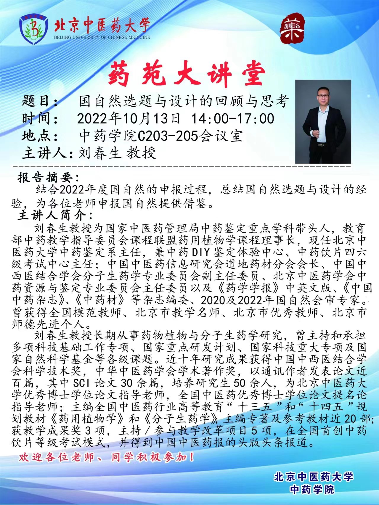 药苑大讲堂丨国自然选题与设计的回顾与思考