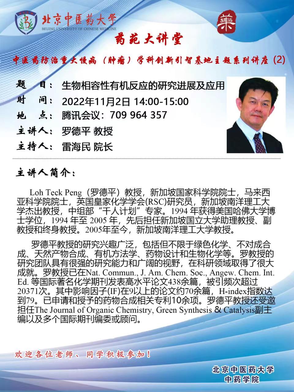 药苑大讲堂丨中医药防治重大慢病(肿瘤)学科创新引智基地主题系列讲座(2)