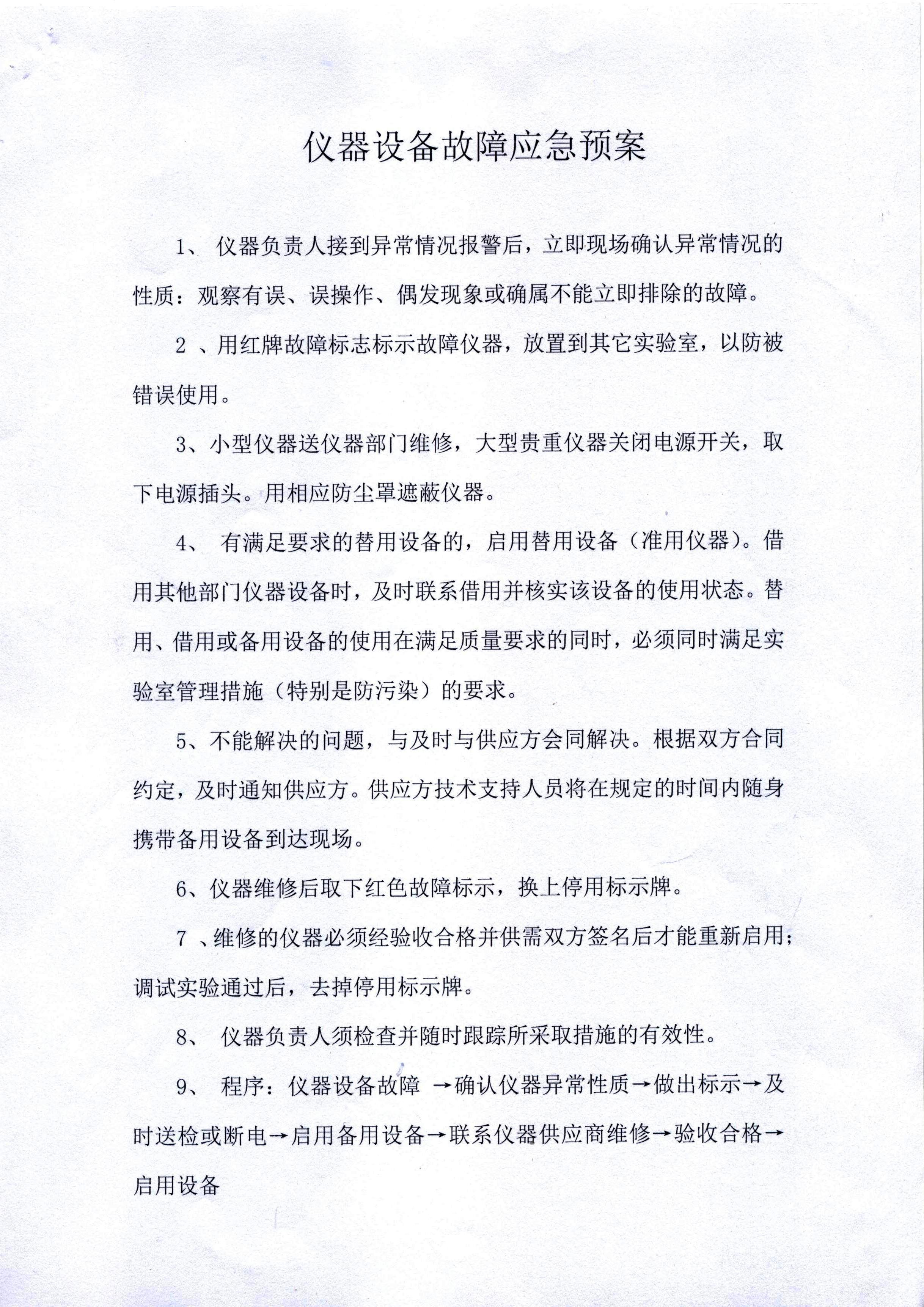 仪器设备故障应急预案