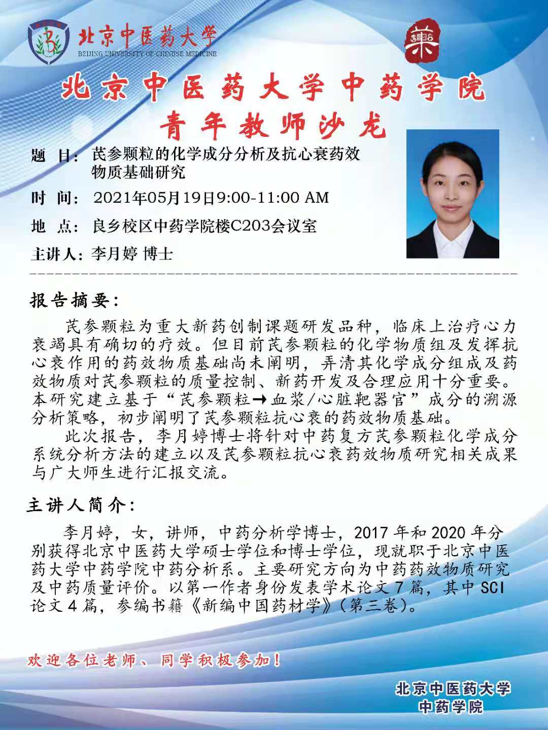 【ylzzcom永利总站青年教师沙龙】李月婷:芪参颗粒的化学成分分析及抗心衰药效 物质基础研究