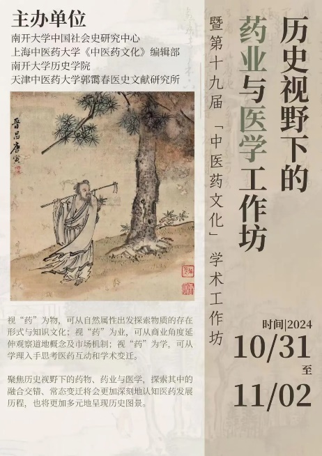 “历史视野下的药业与医学”暨《中医药文化》第19届学术工作坊海报