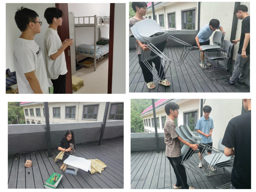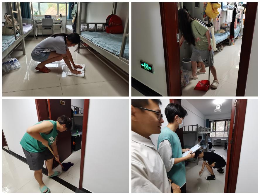 7月13日上午,各小组同学再次对内务卫生以及基地公共区域的卫生进行了统一整理与打扫。实习考试结束后,在公共区域考完试的小组自发承担起公共区域卫生的打扫:同学们将植物标本整理放好,将桌椅板凳归位,然后清扫了公共区域的垃圾,恢复了基地的干净与整洁。之后,同学们又回到自己的宿舍,整理了个人内务。在清扫的过程中,同学们分工明确,默契配合,认真仔细,以极高的参与度顺利完成了此次劳动教育活动。清扫结束后,张丽璇老师带领各小组组长以及党员代表同学对宿舍以及公共区域卫生进行了检查。