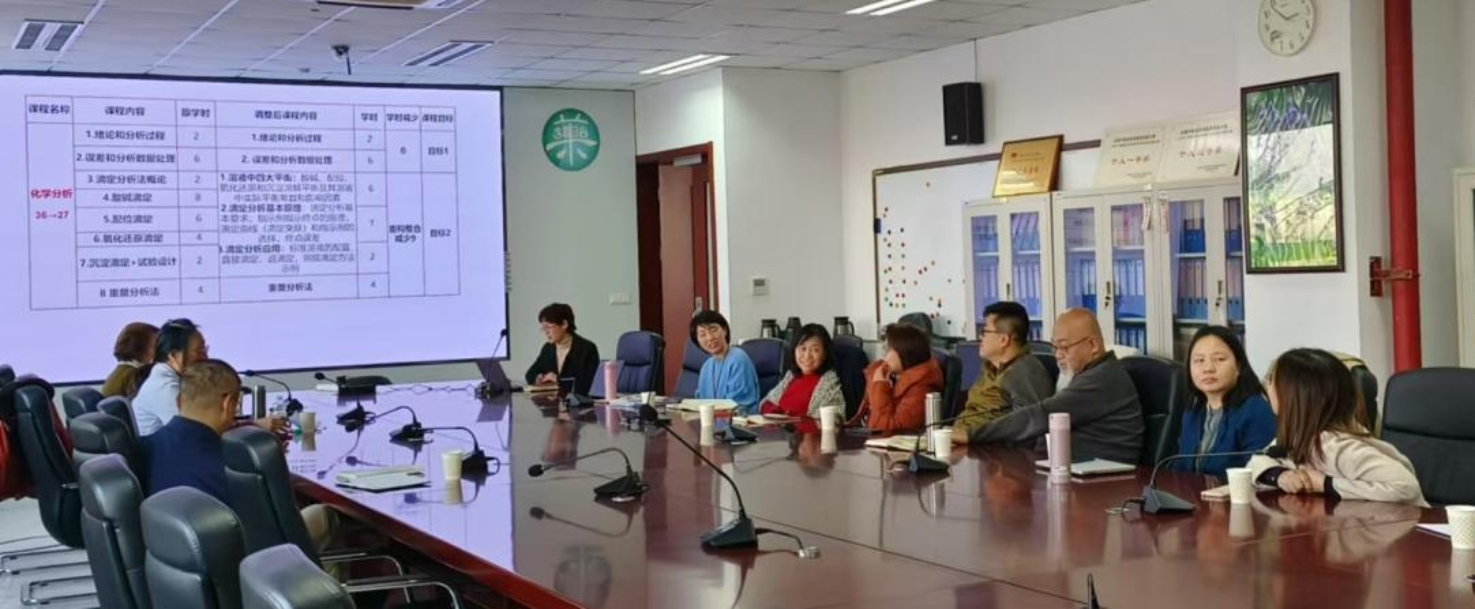 中药分析系詹雪艳老师汇报了《分析化学》整合课程建设情况,拟通过相关内容的教学为学生后续学习中药化学、中药分析学、中药炮制学和中药药剂学等专业课提供必要的分析知识,为从事药品检验、质量分析以及分析科学的研究等工作打下良好的基础。