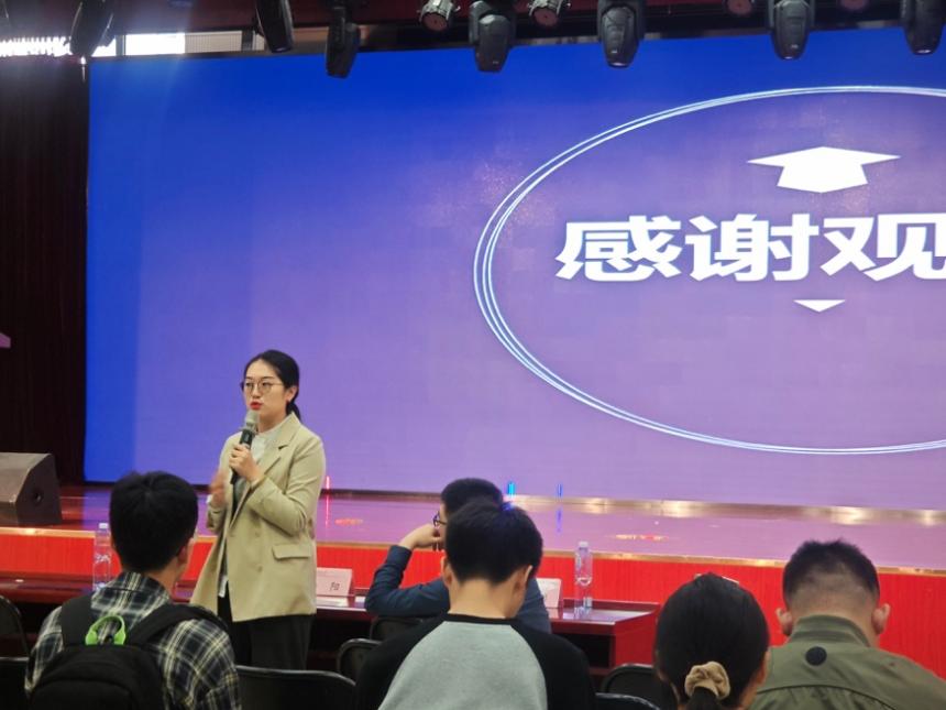 活动第一部分,学工部范颖老师对本次活动作开场发言。范颖老师对本次活动给予高度认可,认为活动开展的时间好、主题好、意义好,期望同学们能从榜样的故事里汲取前进的力量,为自己的人生点燃奋进的光芒。