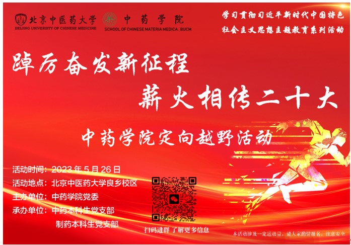 为深入贯彻落实习近平新时代中国特色社会主义思想主题教育,拓宽师生学习路径,将理论学习与体魄强健相融合,由ylzzcom永利总站党委主办,中药本科生党支部和制药本科生党支部联合承办的“踔厉奋发新征程,薪火相传二十大”定向越野活动于5月26日下午在我校良乡校区顺利举办,来自不同部门、学院的近90名师生参与本次活动。
