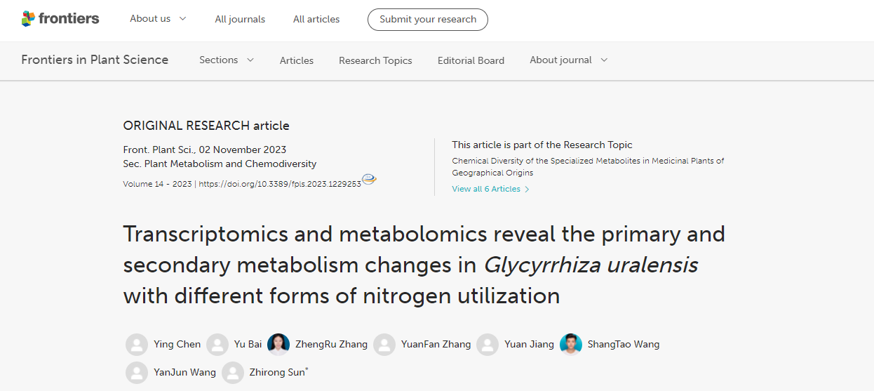 孙志蓉教授团队在氮素调节甘草生长及代谢物积累相关机制研究方面取得进展