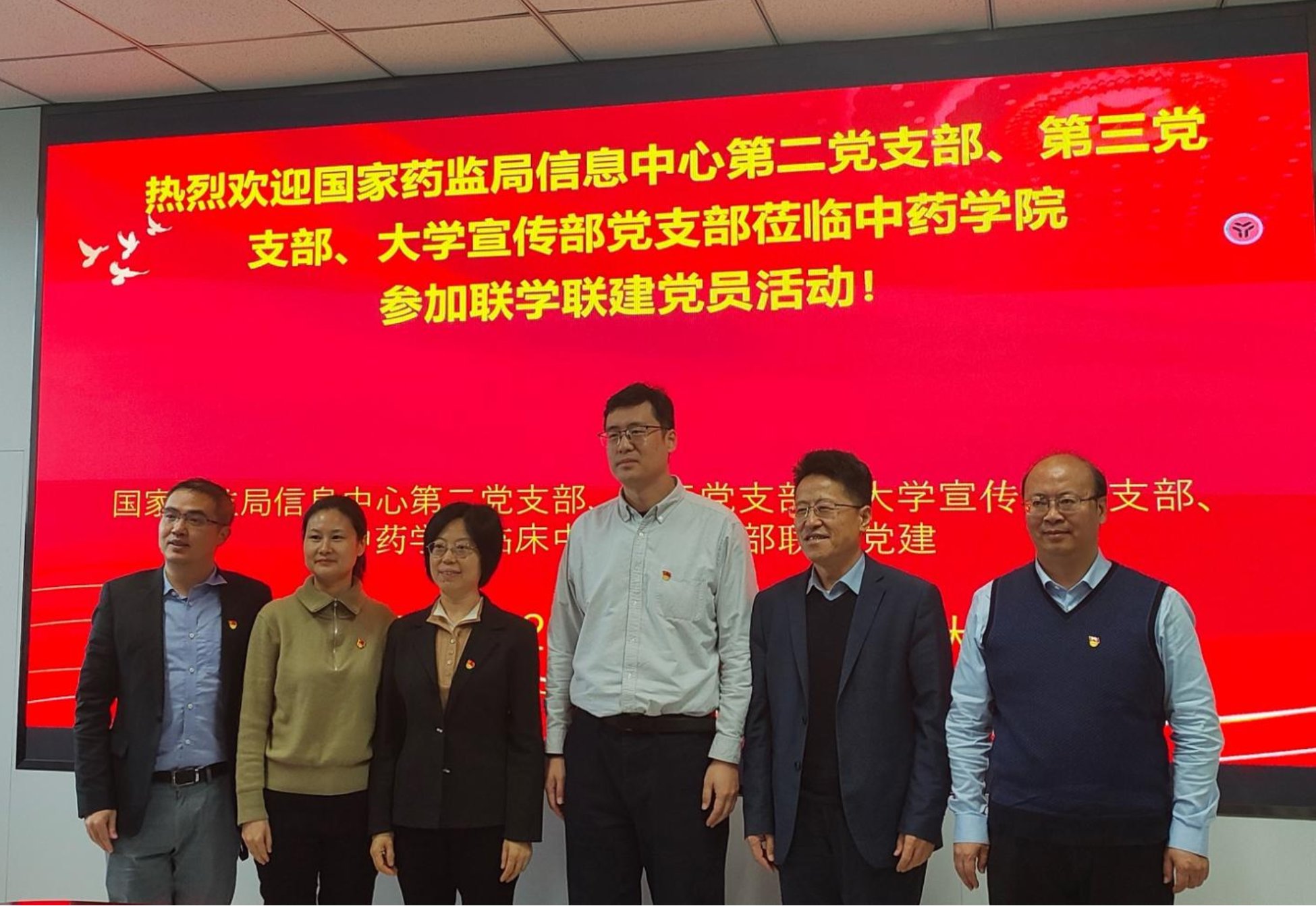 第三部分,党员联心环节。我校宣传部党支部侯中伟书记介绍了学校中医药学术和管理研究情况。国家药品监督管理局信息中心张艳琴纪委书记、陆颖副处长介绍了我国药品监管情况和药品监管信息建设成果。双方就中医药传承创新发展、中药监管科学发展思路等议题进行了充分交流讨论,并互赠了学术著作和杂志作为纪念。