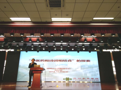 首先,刘纪青主任以35年前自己作为新生参加入学教育时学习到的内容作为导入,鼓励同学们奋发学习,为中医药事业贡献自身力量。随后,刘主任就近几年创作的诗歌与同学们进行了分享,其中包括曾获“深圳市职工诗歌大赛二等奖”的《心灵驿站·中药之歌》,以及为深圳市中医院50个制剂品种创作了古体诗。刘主任表示,在国家大力弘扬中国传统文化的背景下,将中医药和诗歌相结合,配合以自媒体的传播方式,成就了他近几年的研究方向。最后,刘纪青主任以一首《千寻》结束本次讲座。