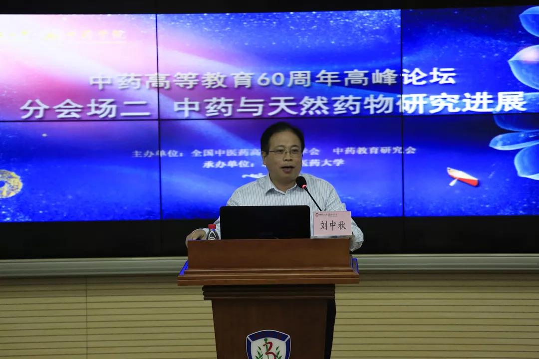 广州中医药大学的刘中秋教授以《中药黄酮成分的肝处置新机制及临床意义》为题作主题报告。