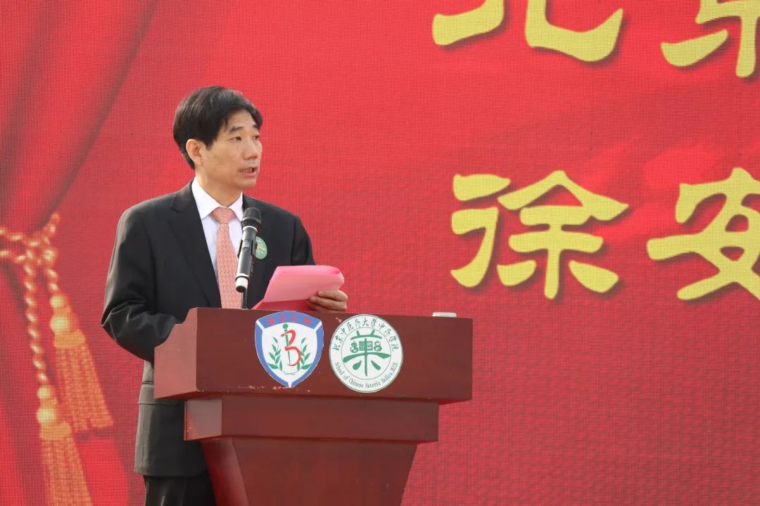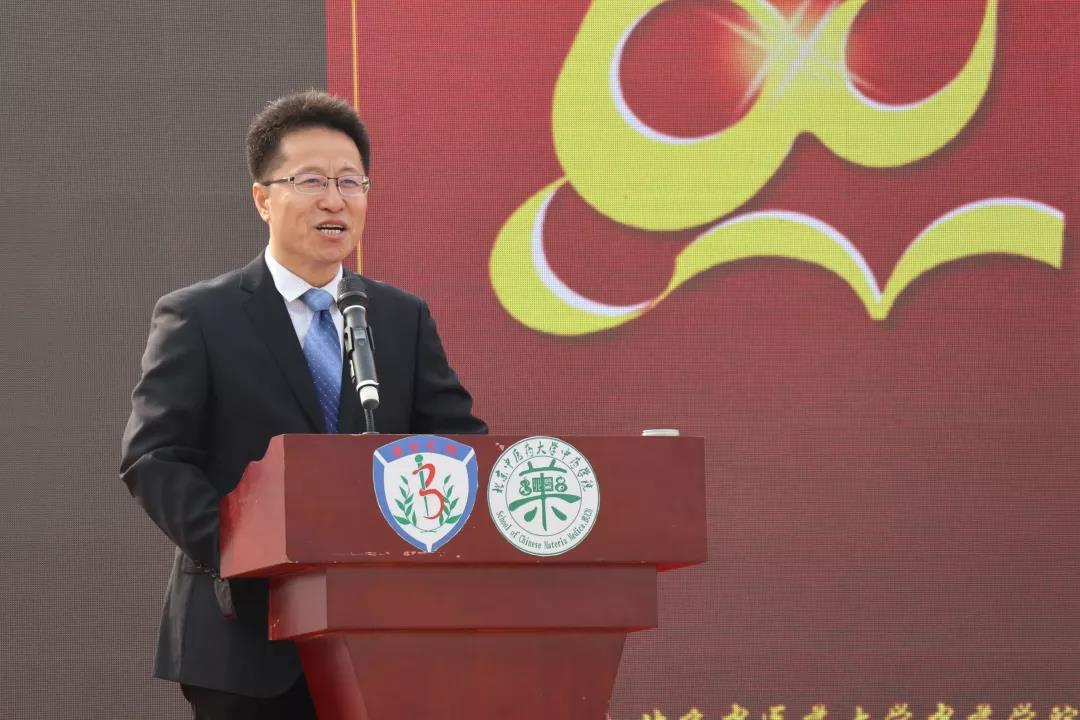 校友代表、美国前FDA植物药、生药、药理审评专家窦金辉感谢母校对自己的教育培养。他说,中医药国际化、现代化正以坚实的步伐向前迈进,对此,北中医人责无旁贷,大家要为中医药事业的发展共同努力,共创共享健康明天。